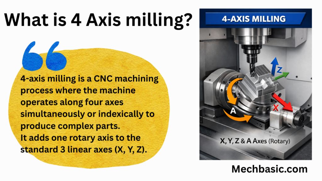 4-Axis milling is an advanced CNC machining process in which the cutting tool moves along the X, Y, and Z