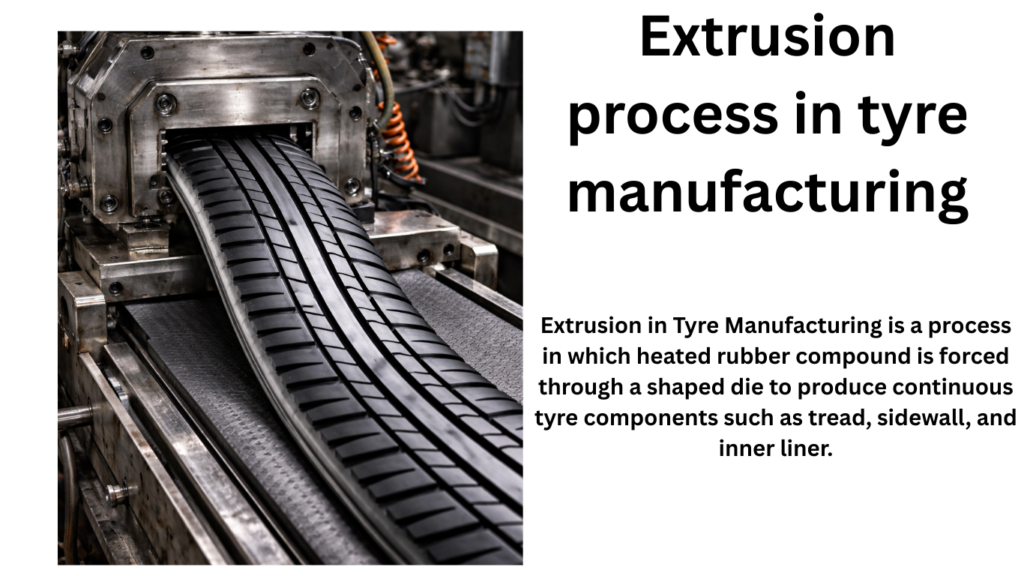 Extrusion in Tyre Manufacturing is a process in which heated rubber compound is forced through a shaped die to produce