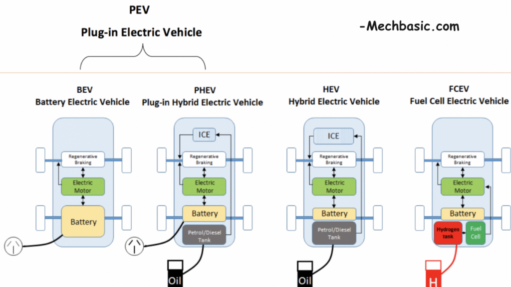 The four main types of electric vehicles (EVs) are classified based on how they use electricity and/or fuel. Here’s a detailed breakdown:
