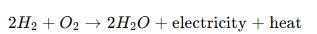- Uses hydrogen + oxygen to generate electricity inside a fuel cell.