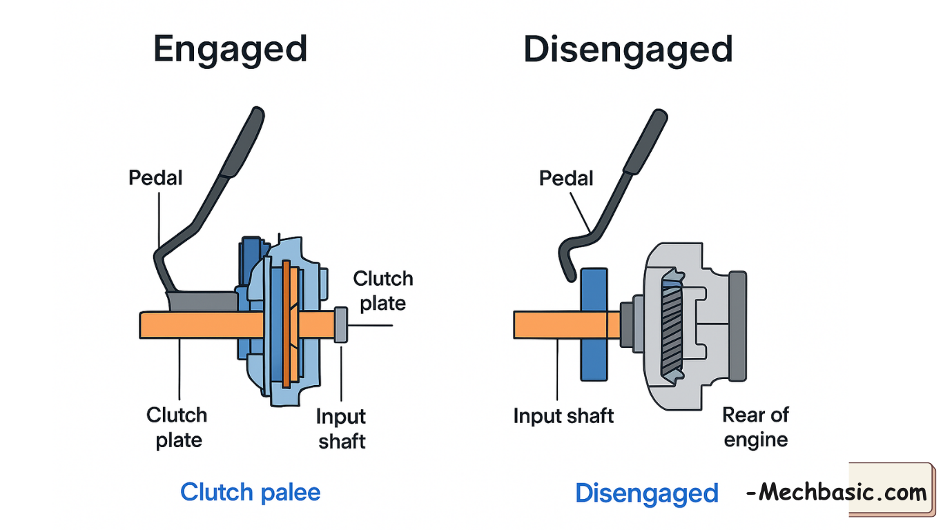 - Changing Gears: Clutch disengages engine power → you shift → clutch re-engages → power resumes.