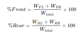 👉 So this car has a 58.6:41.4 (front:rear) weight distribution, with perfect left/right balance.