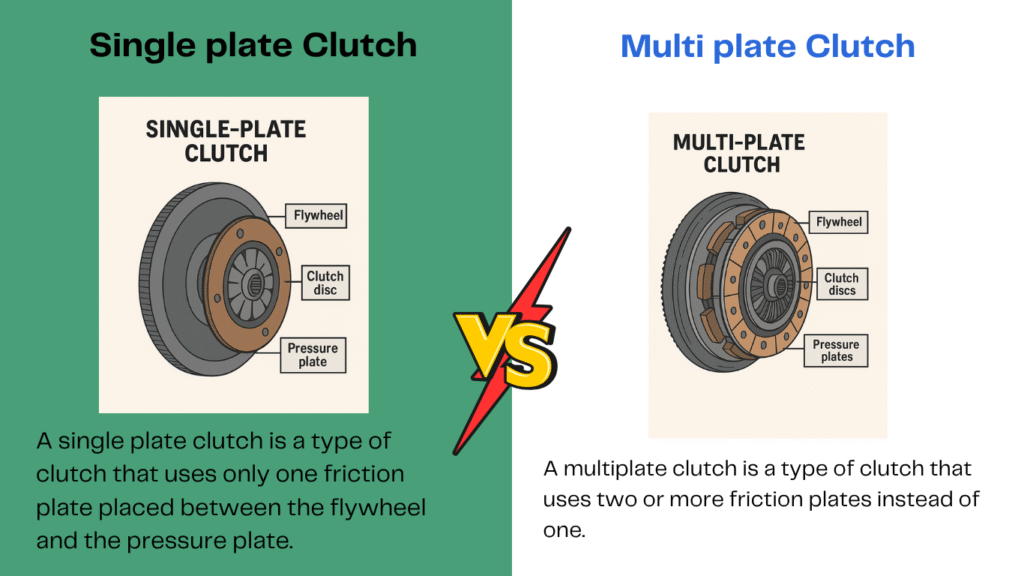 - For motorcycles, racing cars, or heavy-duty vehicles → Multi-Plate Clutch is better (compact, handles high torque).