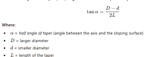 Taper turning is a lathe machining operation in which a conical surface is produced on a cylindrical workpiece by gradually reducing its diameter along the length of the job.