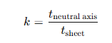 - K-factor = ratio of neutral axis location to sheet thickness.