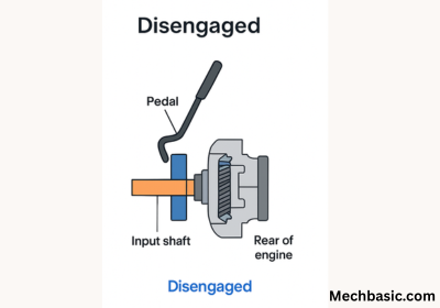 When you release the pedal, the clutch plate re-engages with the flywheel, transmitting engine power to the transmission and wheels.